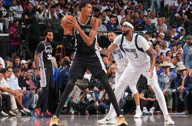 40分15籃板1助攻1搶斷3蓋帽0失誤,這數(shù)據(jù)一看,很像凱文-加內特或者安東尼-戴維斯;其實和濃眉有關,卻不是他本人,而是對手文班亞馬。
