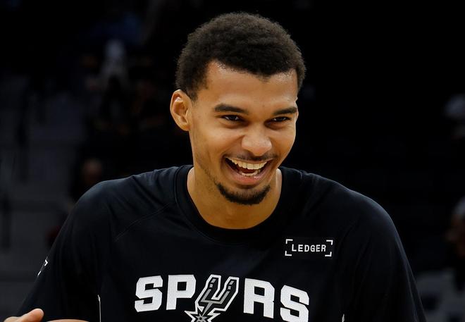 馬刺隊VS獨行俠隊揭幕戰(zhàn),文班亞馬大戰(zhàn)雙狀元濃眉和弗拉格,雙狀元聯(lián)手貢獻32分+23籃板,但他們在文班亞馬面前還是顯得弱不禁風(fēng),馬刺以125-92狂勝獨行俠!文班亞馬僅出戰(zhàn)29分鐘,21投15中(三分球2中1),罰球11中9,爆砍40分+15籃板+1助攻+1搶斷+3蓋帽的豪華數(shù)據(jù),場上正負值高達+31,冠絕全場。據(jù)NBA官網(wǎng)數(shù)據(jù)統(tǒng)計,文班亞馬是馬刺隊史首位在揭幕戰(zhàn)砍下40+的球員。同時,文班亞馬是NBA歷史上第3位在30分鐘內(nèi)砍下至少40分+15籃板的球員,前2位分別是2017年的濃眉和2023年的恩比德。